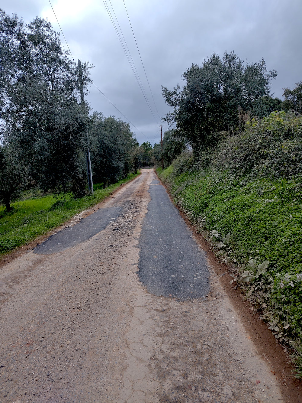 Er rijden nog steeds vrachtwagens heen en weer maar lang niet zoveel als een tijdje terug. Misschien doet de eigenaar van het vrachtwagenbedrijf het wel voor zichzelf, opdat de wagens wat makkelijker door kunnen rijden. Of de eigenaar van de varkenshouderij, omdat die zich een beetje zorgen maakt om de schade die aangebracht wordt. Ons maakt het niet uit. Het rijdt een stuk comfortabeler. Nog niet alle gaten zijn gedicht maar wellicht komt dat nog.