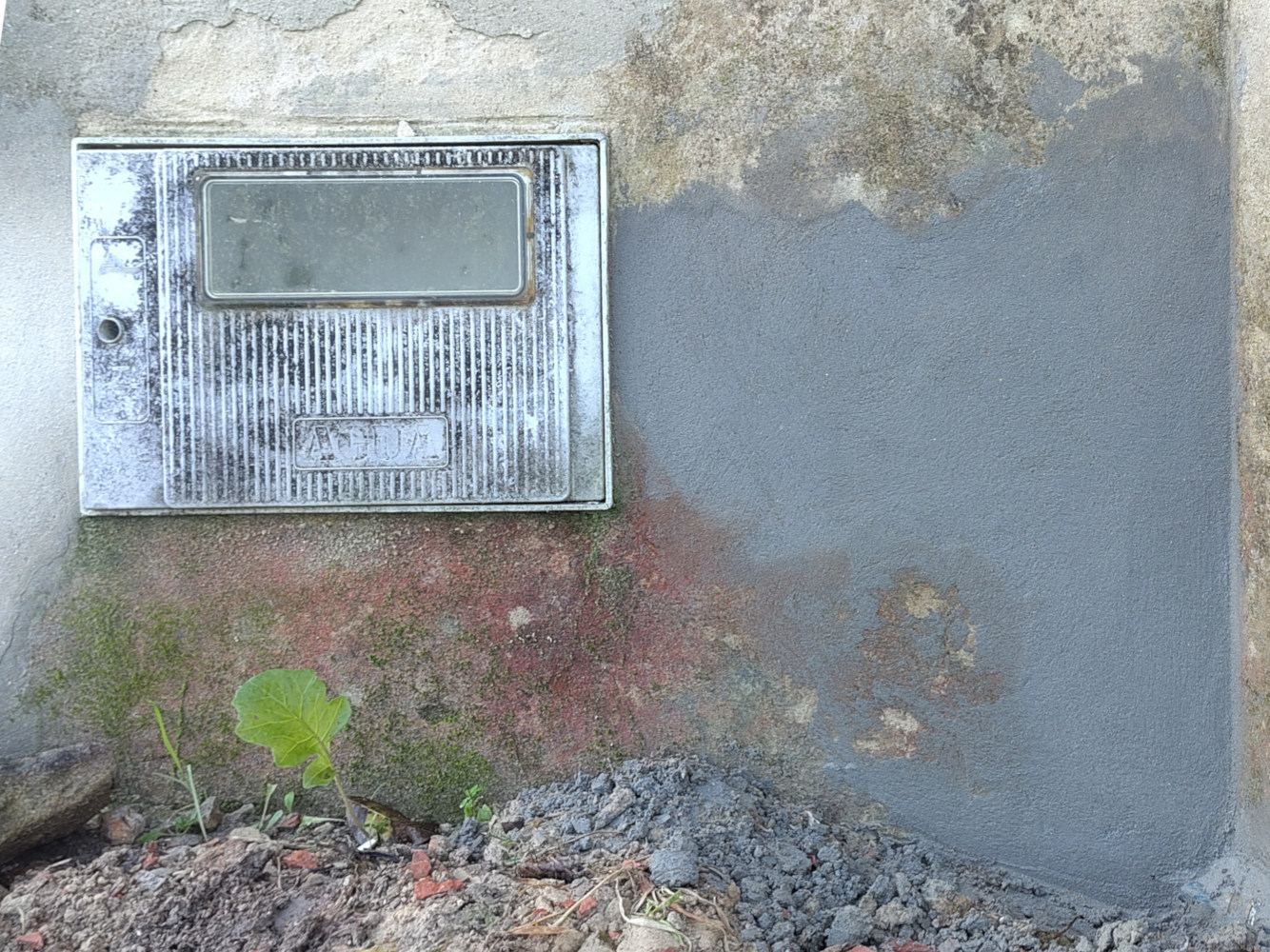 Nou nog een kwast eroverheen en je ziet er helemaal niets meer van. Al moet de rest van de muur ook wel aangepakt worden waarschijnlijk want het water heeft het niet goed gedaan.