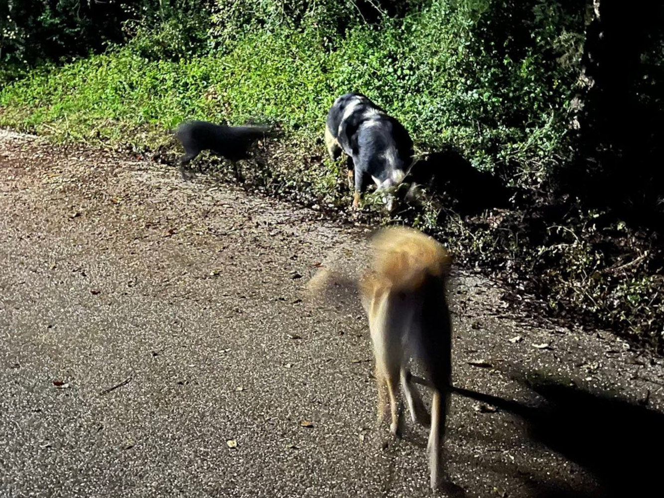 Wat doe je op Kerstavond! Spelletjes doen met vrienden, maar natuurlijk ook de honden uit laten. Deze keer hadden we bijzonder gezelschap. Qua wandelen dan. Eén van de varkens van João liep los, Ze lopen weer veel los de laatste tijd. We hebben ook al een paar biggetjes gespot, waarvan João zegt dat hij ze niet te pakken krijgt. Te eigenwijs om weer naar binnen te gaan. De varkens zijn honden gewend, ze kijken niet op of om als er eentje in de buut komt. De honden worden wel nerveus, ze staan een beetje tegen de varkens op te blaffen, tot ze zien dat er geen eer aan te behalen valt.