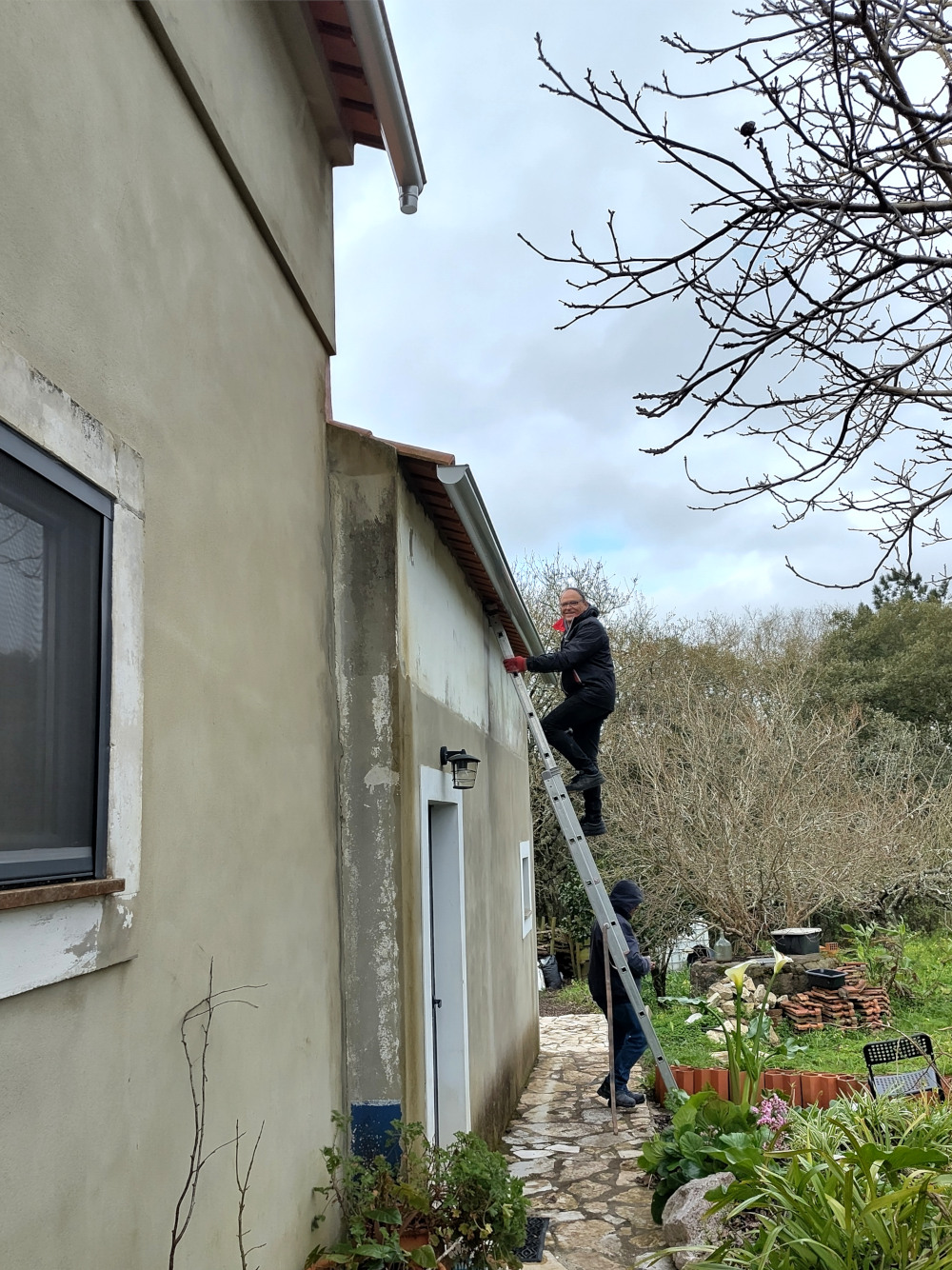 Sommige dingen hebben tijd nodig, sommige dingen wat meer en sommige dingen duren eindeloos. Let wel: op 8 september 2023 zijn de eerste goten geplaatst. Inderdaad, tweeënhalf jaar geleden bijna. Maar nu is de klus afgerond. De laatste goten zijn geplaatst. We wilden met de goten wachten tot het dak vervangen was, logisch, en tot de zonnepanelen geplaatst waren. Dat duurde allemaal veel langer dan verwacht en dan moeten de gotenmaker ook maar net tijd hebben om ze op te hangen. Ook dat duurt weer even. Alles bij elkaar moet je voor sommige dingen een lange adem hebben, maar uiteindelijk hangt alles.