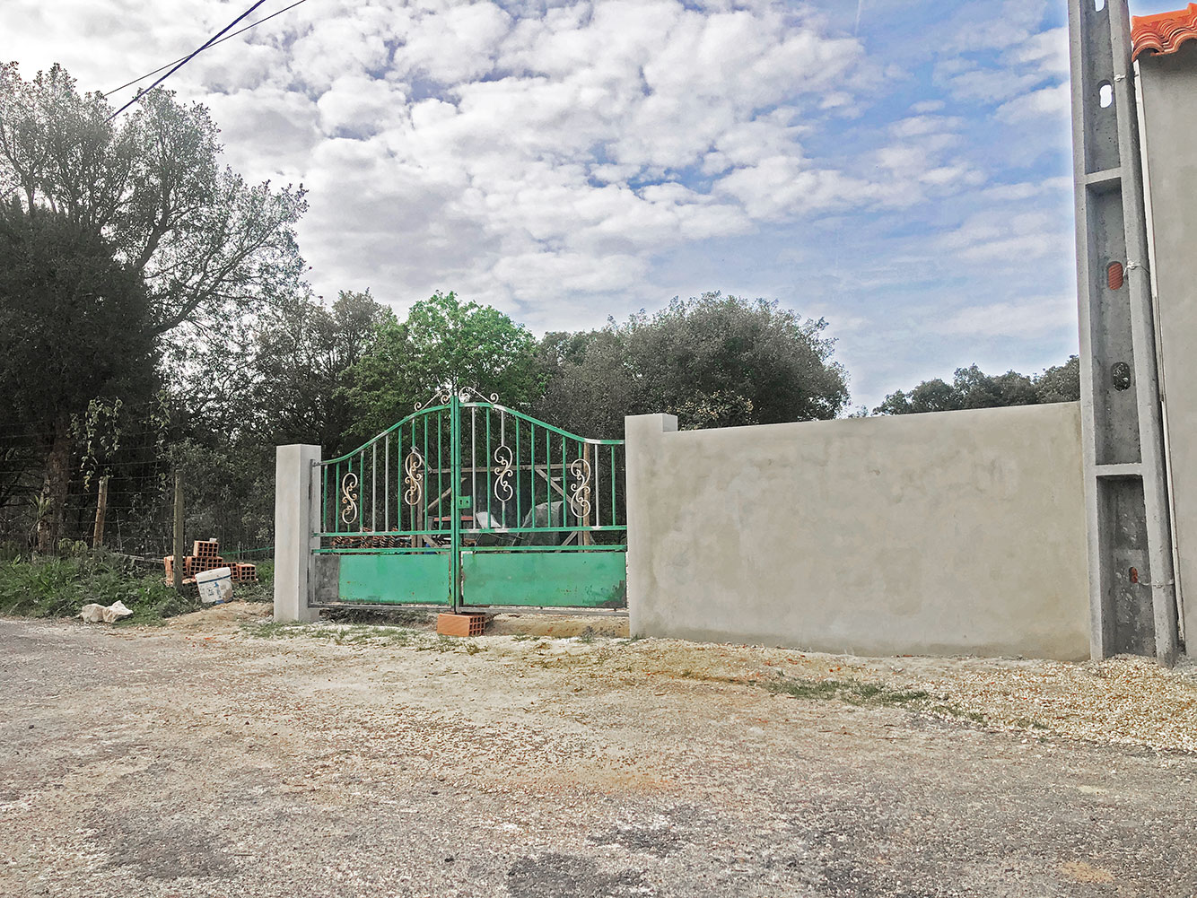 Het hek hangt! En echt op de Portugese manier, niet waarop het hangt, maar de manier hoe het ging. Zomaar onaangekondigd stonden Rui en één van zijn medewerkers ineens op het terrein om het hek te plaatsen. Rui riep nog dat hij het helemaal vergeten was en het zich plotseling realiseerde. Dat maakt allemaal niet uit. Het hek os geplaatst. We kunnen het nog niet gebruiken, het zit in het midden nog provisorisch vast, want er moet nog een dorpel komen en zo’n gat in de grond waarop het hek met zo’n pin vastgezet kan worden.