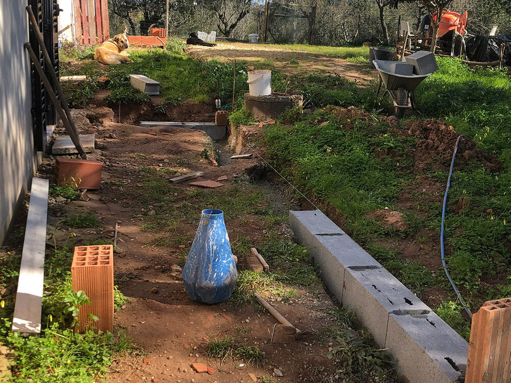 Matthew, onze vrijwilliger van een tijdje terug, is begonnen met het graven de greppel voor het fundament van het terras bij het appartement. Hij was nauwelijks klaar of het begon te regen. In natte grond kun je geen fundament maken, dus het was wachten tot het een tijdje droog zou zijn. Matthew heeft het niet […]