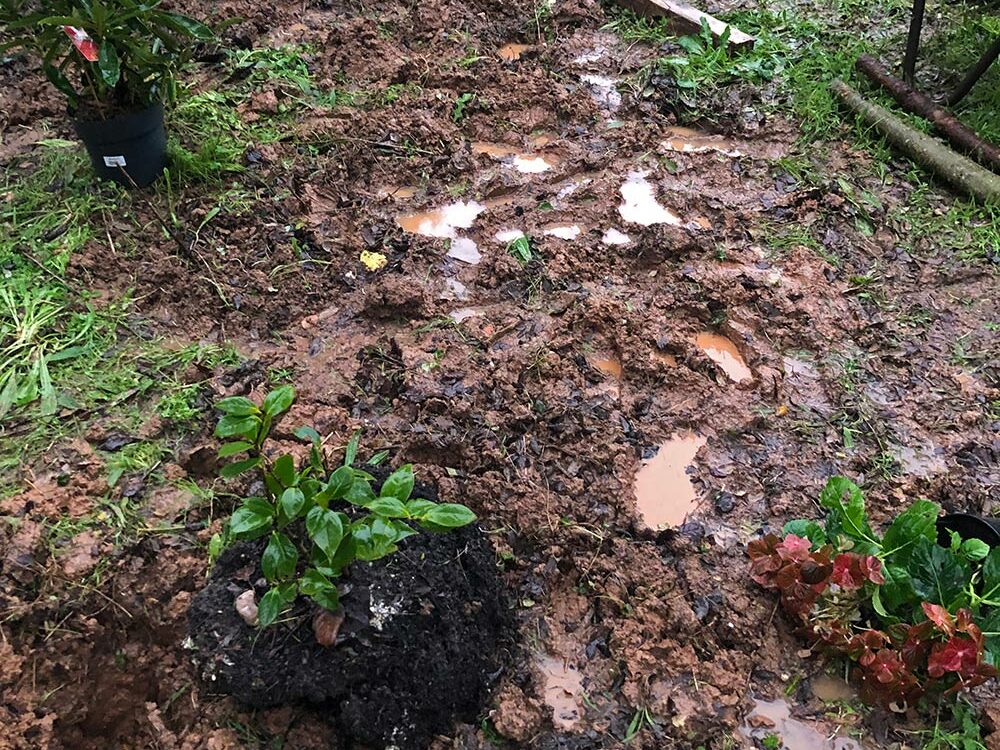 Het is eigenlijk geen weer om buiten te werken, maar tussen de buien door gaat het wel. Vandaag is er meer dan 40 mm gevallen en dat kun je goed zien aan de grond. We zijn begonnen een stukje te ontdoen van bramen, eiken en ander spul. Eigenlijk wel handig nu de grond zo zacht […]