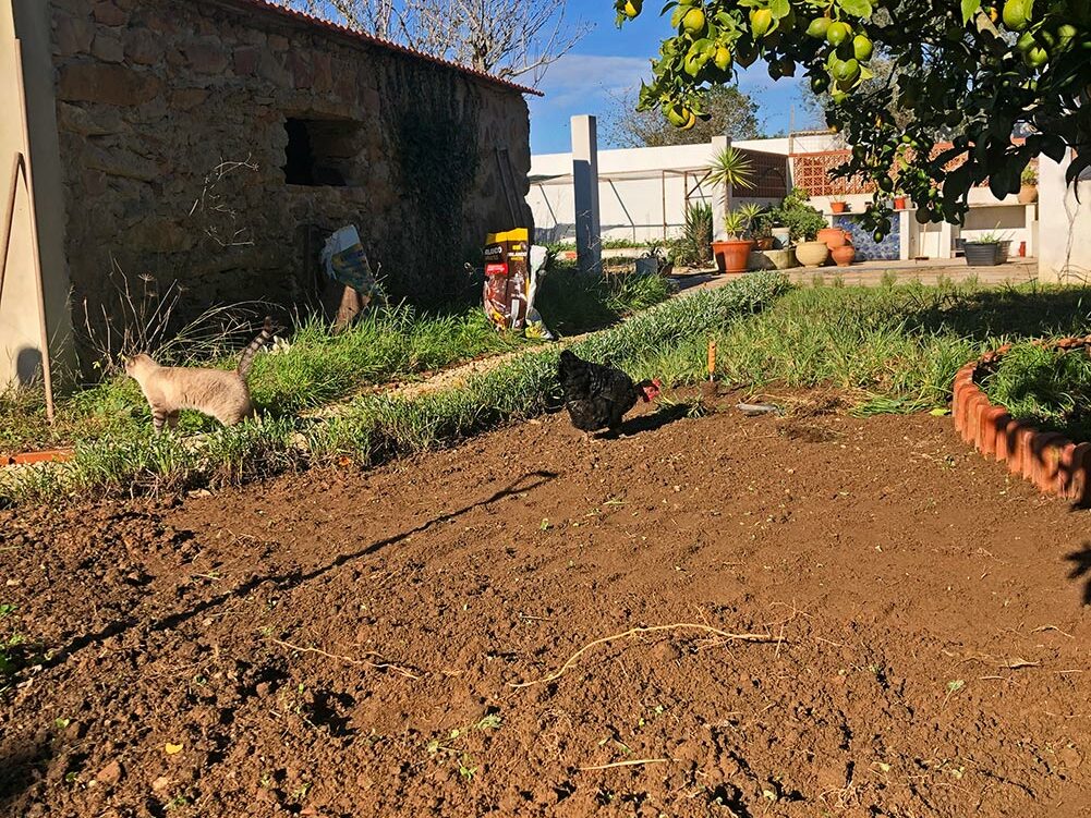Betty is een stuk van haar grasveld af aan het steken. Het groeit te veel aan de randen. Het is dat stevige Portugese gras dat groen blijft in de zomer, ook als het erg droog is. Wat zij te veel heeft kunnen wij mooi gebruiken. Het stuk onder de citroenboom en de sinaasappelboom is een […]