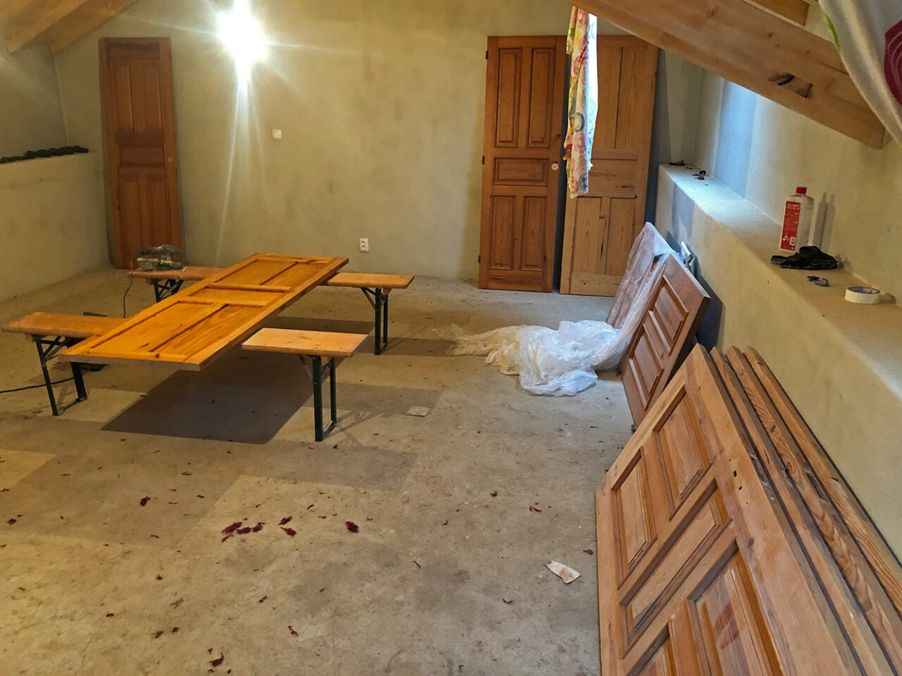 Matthew, onze vrijwilliger, is erg georganiseerd. Nu het zoveel regent, helpt hij ons bijzonder goed met het schuren van de deuren die we een tijdje geleden aangeschaft hebben. Op de deuren zit nog het beslag, de deurknoppen, de scharnieren en de sloten. Hij haalt het er netjes vanaf en legt het keurig bij elkaar op […]