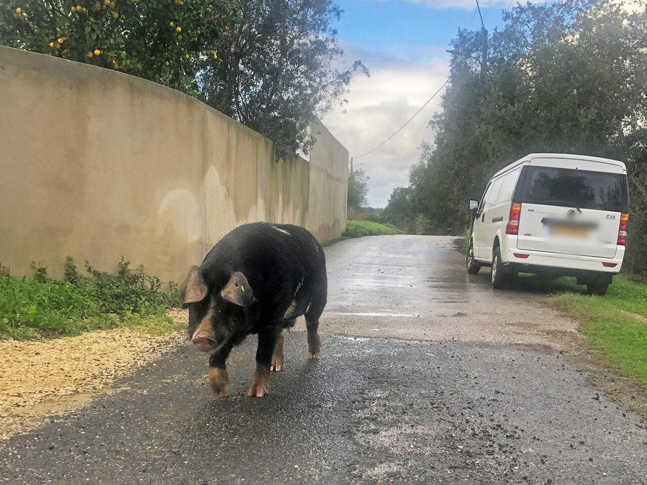 Het is vaker gebeurt, maar het is elke keer toch weer onverwachts, als er ineens een volwassen varken over de weg wandelt. Het dier is bijzonder vriendelijk, hij snuffelt een beetje en kuiert langzaam langs. Op zijn dooie gemak. Karma, Tomás en Milan staan achter het hek lekker te blaffen, want het is toch wel […]
