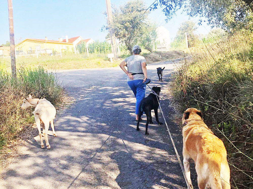 Het lijkt of ze er een gewoonte van gaat maken, Isabel. Op een of andere manier weet ze zichzelf los te maken als er met de honden gewandeld wordt. Ze sluit gauw aan bij de kudde om gezellig een stukje mee te lopen. Karma, Tomás en Milan hebben er geen problemen meer mee. De nieuwigheid […]