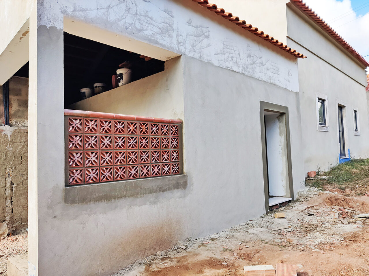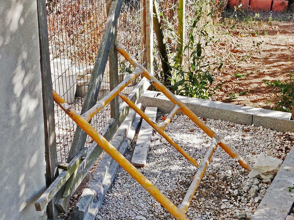 De muur van het appartement is gestuukt. Maar ja, daar zaten de houten beugels op waarmee het tussenhek werd vastgehouden. Er zitten op het hek twee stukken hout, die als een soort hengsel werken en waarmee het hek dichtgehouden werd, opdat de honden niet van het voorterrein naar het achterterrein kunnen. Op het achterterrein lopen […]