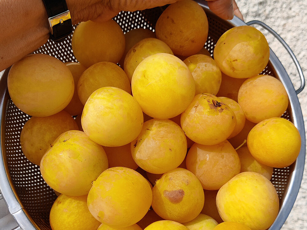 De pruimenboom met gele pruimen hangt stampvol. De vruchten beginnen er al af te vallen. Ze zijn superrijp.  Het is heerlijk als je de pruimen plukt en meteen eet. Ze zijn nog warm van de zon en dat geeft net dat extra. De gevallen vruchten zijn welkom voor de vele bijen, wespen nog niet zo […]