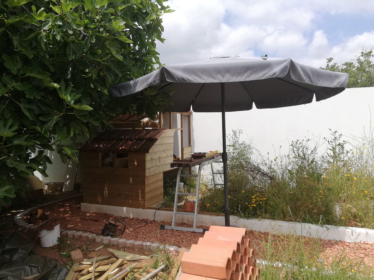 Het werk aan de kippenren vordert. Langzaam, maar het gaat. Het is een hoop zaagwerk en maatwerk, zowel voor het hout als voor de pannen, maar het wordt langzamerhand wat. Aan de ene kant kun je lekker in de schaduw van de vijgenboom staan en met een beetje wind erbij is het erg lekker. Aan […]