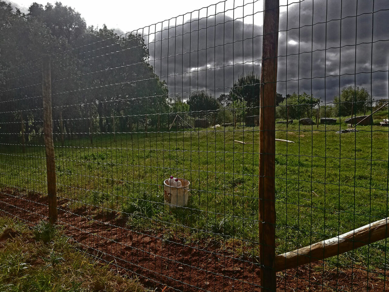 De kraal is in gebruik genomen. En hoe. Isabela, Beatriz en Inês vermaken zich prima. Vooral Inês en Isabela rennen rond en maken bokkesprongen. Inês neemt af en toe een sprint van de ene kant naar de andere. Isabela schuurt tegen het gaas, alsof haar leven ervan afhangt. De palen staan nog niet echt lekker […]