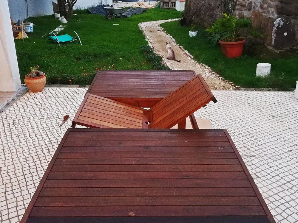 En de tafel is ook gedaan. Hier en daar is het een stuk donkerder geworden. Het stuk dat ingeklapt kan worden ziet nooit zon of regen, want als het weer wat minder is, staat de tafel ingeklapt onder het afdak. Dan staat-ie niet in de regen, maar nog wel in de zon. Een beetje gehannes […]