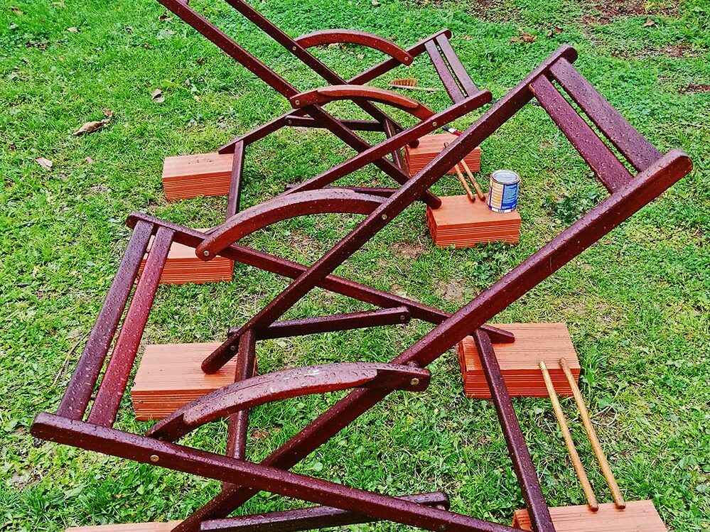 Het moest er een keer van komen. In de ochtend was het prachtig weer. ’n Beetje fris maar met een lekker zonnetje. ’n Goed idee om na de terrasstoelen en de tafel ook de tuinstoelen een likje te geven. ’t Ging allemaal goed, een klein uurtje per stoel en toen we gingen lunchen begon het […]