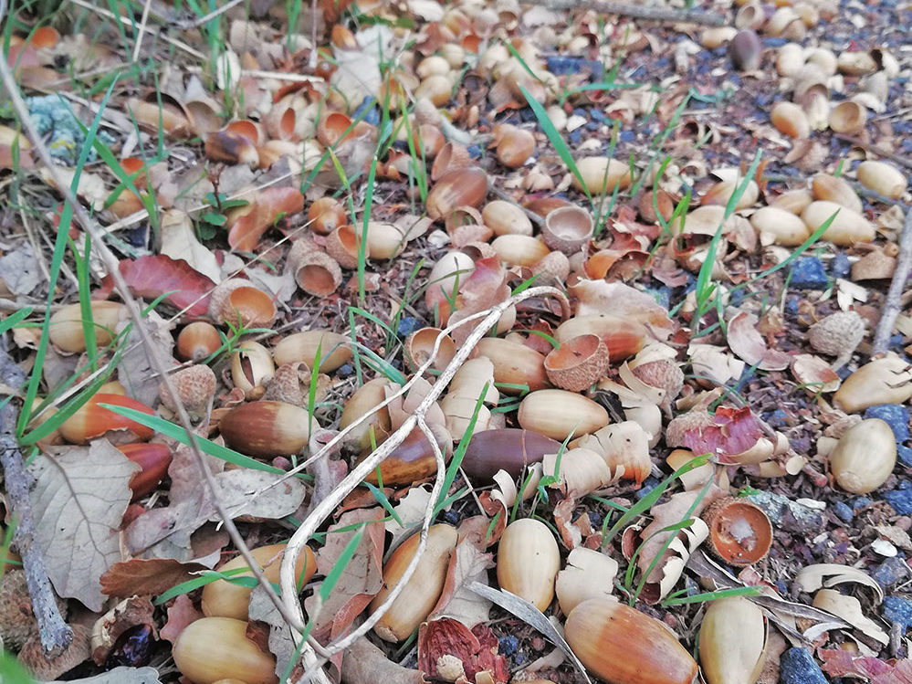 Waar het weggetje omhoog gaat is het bedekt met een dikke laag eikels. Waar de wielen over de weg gaan zijn ze platgereden of opzij geblazen, maar daarnaast ligt er een tapijt. Alsof het een grof grindpad is. Volgens sommigen betekent een grote hoeveelheid een koude winter. Of dat zo is gaan we komende maanden […]