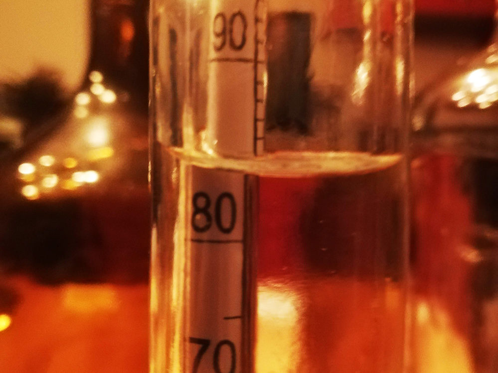 En de eerste echte destillatie is geslaagd! Nog wel van gekochte wijn, om het proces een beetje te leren. Van tien liter wijn van 13% hebben we in twee destilleerrondes een mengsel gemaakt: ruim een liter van 85%. Goede basis voor onder meer limoncello. We hebben de pruimen van een maand geleden laten gisten, daarvan […]