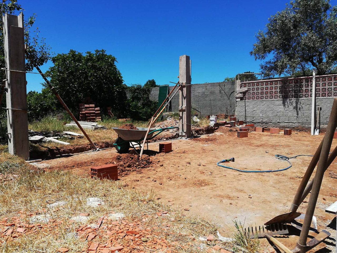 ’t Kost een hoop werk, maar dan heb je ook wat. Het stuk waar het terras moet komen is nu helemaal afgegraven en zo goed als waterpas. De schattingen gaan dat er 250 kruiwagens verplaatst zijn. Een gedeelte met aarde en puin en een gedeelte met alleen aarde. Eigenlijk geen aarde, meer een soort klei. […]