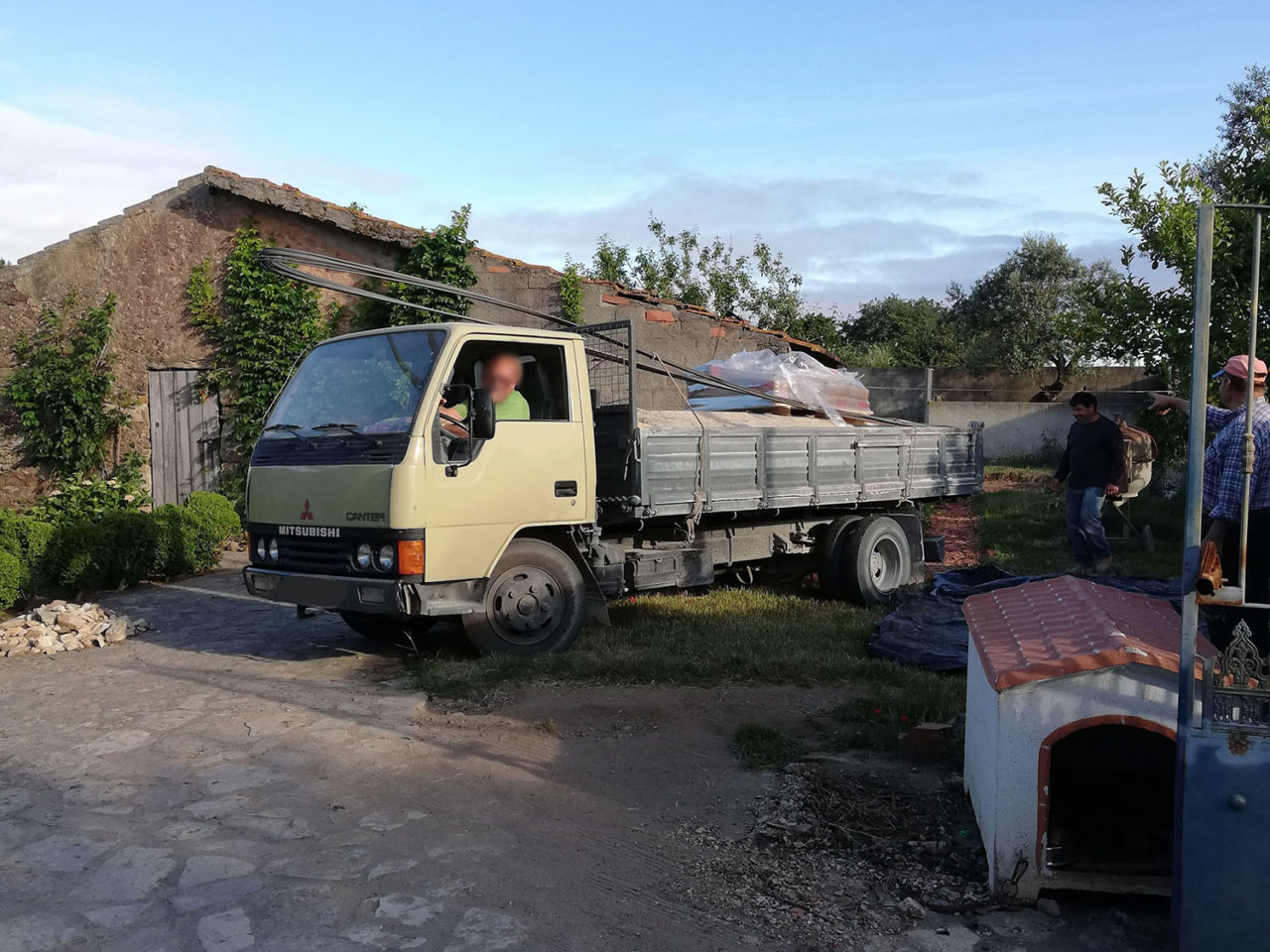 Voor het terras is nogal wat cement nodig en zand. Hoe krijg je dat in de buurt? Gewoon met een vrachtwagen. ’s Ochtends om negen uur staat-ie voor de deur. Het grote hek open, het pleintje op, een paar keer heen en weer steken en kiepen maar! ’t Kost helaas wel een stuk van het […]