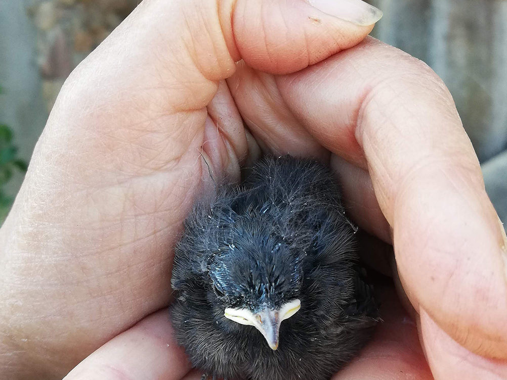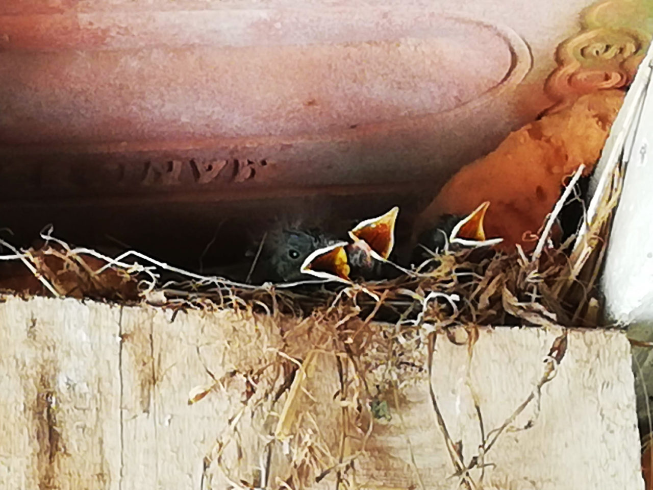 Dat is een verrassing! Op dezelfde plek waar het wespennest zit, ongeveer, hoorden we ineens gepiep. En bovenin, waar we dachten dat een onbewoond oud vogelnest zit, zien we ineens drie gele snaveltjes. Zo vlak onder de pannen is het warm en het lijkt of de vogeltjes zich koelen door de snavels wijd open te […]