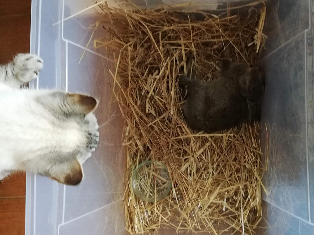 Vlak voor de deur zit Xarique aan een ketting en de katten lopen ’s nachts vrij rond. Er lopen rondom natuurlijk ook kleine konijntjes rond. Deze zat bij Xarique, die er net niet bij kon en de katten stonden ertegenover. Hij is óf gepakt door de katten, óf aangereden. Hij liep zenuwachtig heen en weer […]