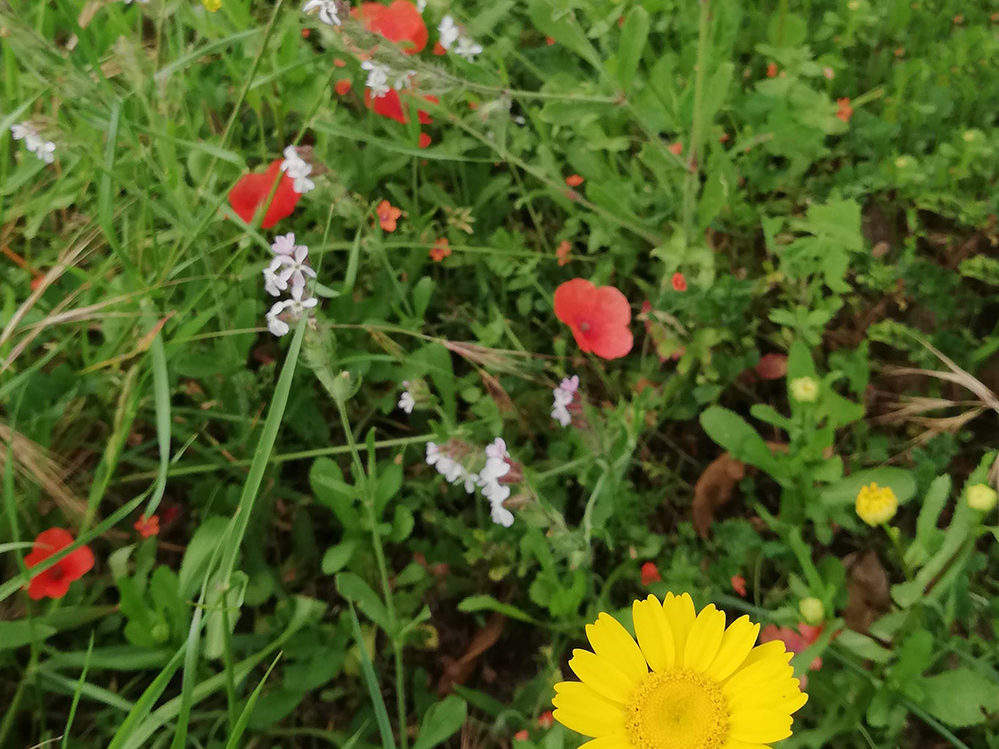 Dit gele spul staat nu overal in bloei. Bij ons op het terrein staat hier en daar een bosje en langs het weggetje zie je het in het veld staan en aan het begin van het weggetje staat de hele berm ermee vol.  Volgens Google Lens is het Gele Ganzenbloem (Glebionis segetum), de kleur is […]