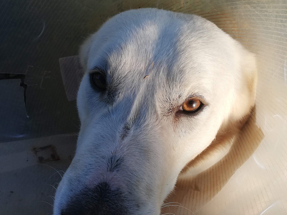 Max is gisteren ‘geholpen’. Hij is nog een beetje suf. ’t Meest vervelende is de kraag die hij om moet. Hij is toch al lomp, maar met die kraag botst hij overal tegenaan. Hij is nog meer aanhankelijk dan anders, en met die kraag knalt hij dan steeds tegen je op. Eten is ook lastig, […]