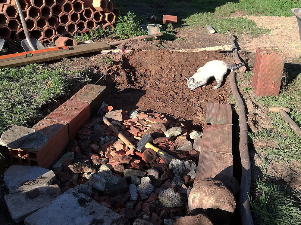 Naast het oude huis ligt een enorme bult puin. Gebroken dakpannen, stukken marmer, stukken natuursteen, stukken beton. Je vindt er van alles. In de loop van de jaren stevig overgroeid met ondermeer bramen. Daaarnaast loopt een soort van paadje dat bij regenachtig weer een smeuiige kledderbrij wordt. Niet handig als je even naar achteren wilt […]