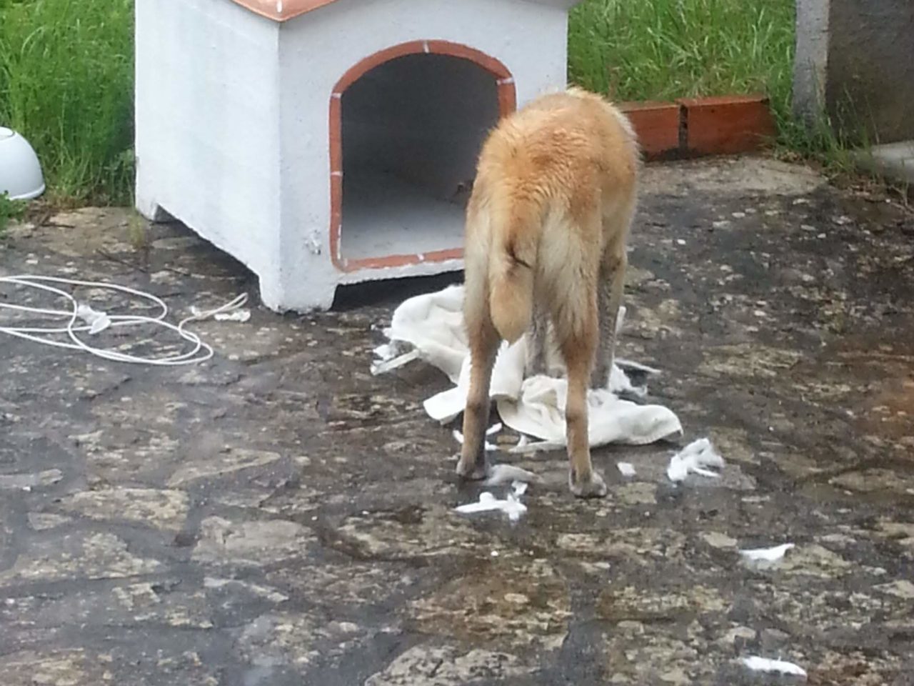 We zijn weer terug. Voor Karma hebben we een hondenhok gekocht en Betty heeft een dekentje voor Karma om op te liggen. Karma heeft er andere ideeën bij. Ze ligt sowieso liever op het gras, in de regen.