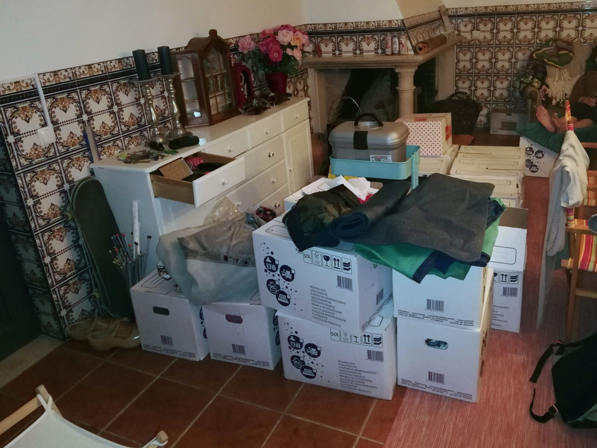 En we zijn er weer met een flinke lading goederen! Net de huiskamer weer aan kant en daar staan weer een hoop dozen. En de drie fietsen, het espressoapparaat, en de naai- en lockmachines die mee zijn staan hier nog niet op. De rookoven/barbecue staat er ook niet op. Een wonderbusje!