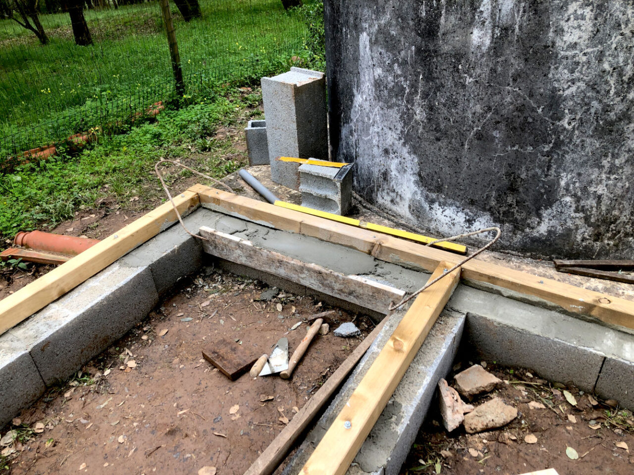 De regen is opgehouden, Amber en Marijn zijn weer naar huis. We kunnen weer verder met wat we aan het doen waren. Het hondenhok wordt weer aangepast. Tussen de buien door hebben we de fundering aangebracht en nu zijn we bezig met de houten opbouw en het gladstrijken van de fundering. ’t Gaat niet snel […]