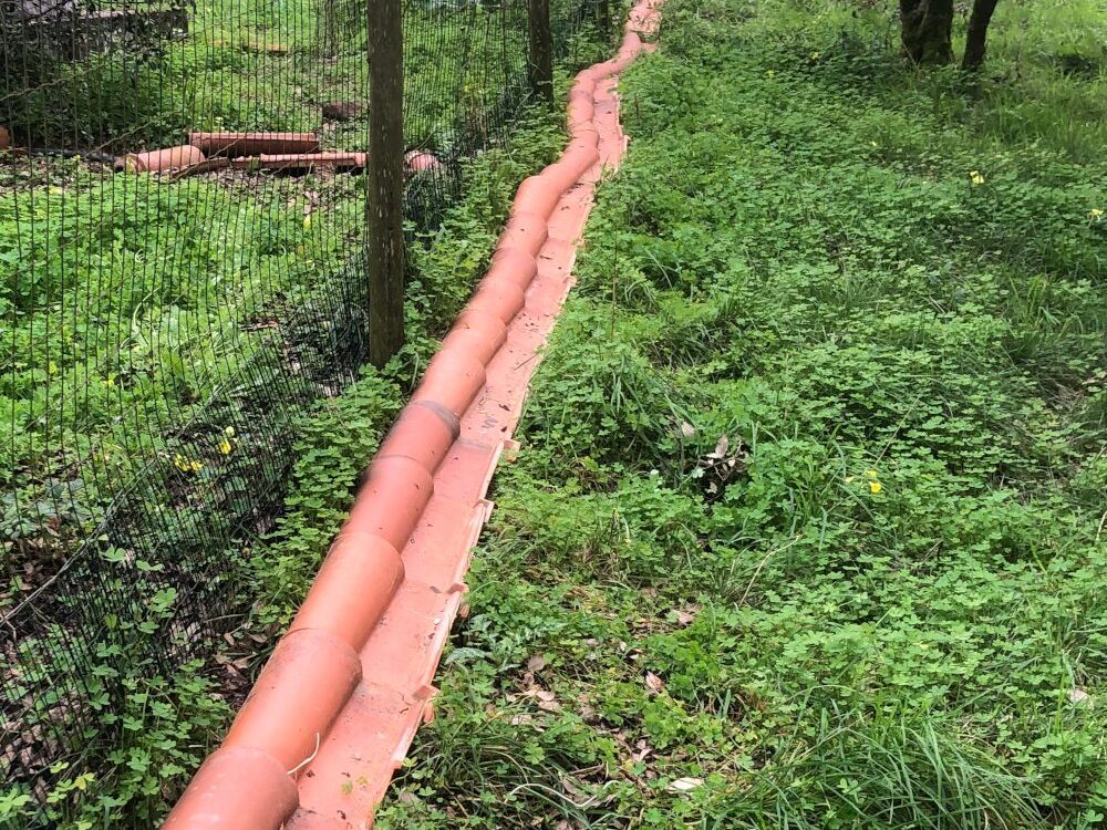 We zijn bezig de irrigatiebuis te bedekken met dakpannen. Dit om er voor te zorgen dat bij het maaien de buis niet beschadigd raakt. Je moet dan wel de ruimte een beetje vrij maken van bramen en ander naar spul anders zweeft de dakpan ergens. Bij het weghalen kom je van alles tegen, meestal klaverzuring […]