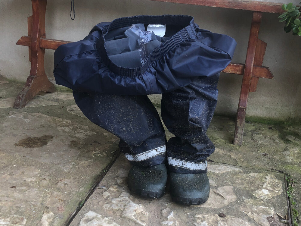 Nee, geen flauwe grappen maken over korte benen en zo/ Het regenpak staat uit te rusten op de laarzen. Met de hogedrukspuit zijn de tegels van het pad naar het appartement schoon gemaakt. Als het zoveel regent dan ontstaat er een algenlaagje dat af en toe best glibberig kan zijn. En het pad naar het […]