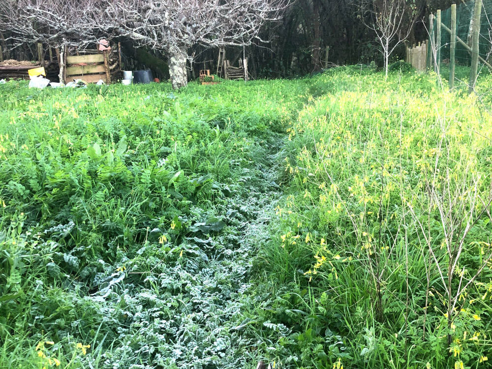 Het is niet zeldzaam, wel redelijk uitzonderlijk, vorst aan de grond. Hier en daar op het terrein zie je witte plekken en over het weiland aan de overkant hangt een witte waas. De mannen die aan het terras aan het werk zijn, zeiden dat bij hun alles wit was. Het kan dus wel: winter in […]