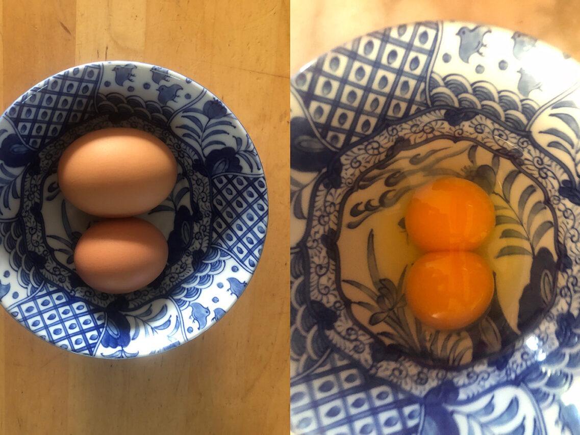 Je voelt bijna de pijn bij de arme kip. In het hok lag een gigantisch ei. Ter vergelijking is er op de foto een normaal ei bijgehouden. En wat we al vermoedden, het grote ei bevatte twee dooiers. We weten niet precies van welke kip het is. We denken dat Branca de Neve en Mortícia […]