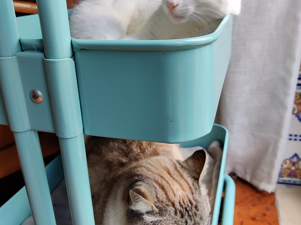 De zolder was het terrein van Tomás en Milan. Maar ja, die is nu afgesloten, dus zijn ze verbannen naar wat wij de voorzolder moeten. We hebben wel hun kleed neergelegd, dat ze nog iets eigens hebben, maar als je hun blik ziet zijn ze het er toch niet helemaal mee eens. Eigenlijk mogen ze […]