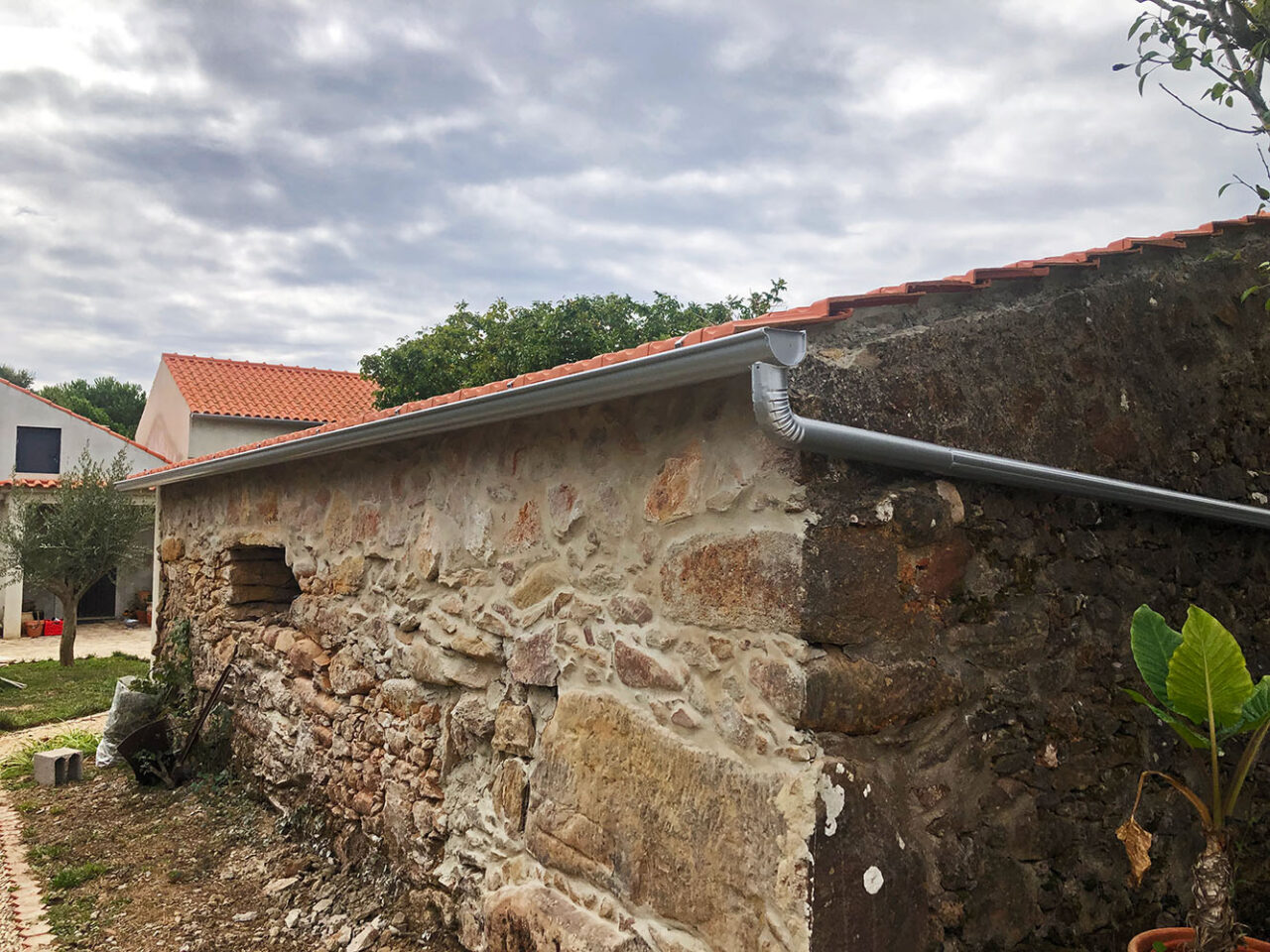 Ziet er lekker strak uit zo, de goten. Ze zijn er vrijdag opgezet en de eerste bui is al gevallen. ’t Was er maar een van een kwartiertje misschien en zoveel water hebben we niet opgevangen, maar het begin is er. De goten doen hun werk. Natuurlijk is het nog niet af, het dak boven […]